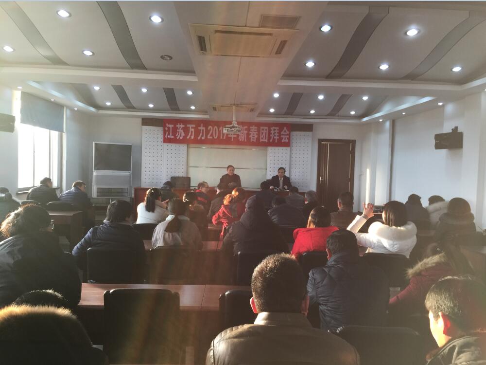 2017年1月31日上午,“江蘇萬力2017年(行政科室)新春團(tuán)拜會(huì)”在公司301會(huì)議室召開。行政科室受表彰的先進(jìn)個(gè)人、管理人員代表出席了大會(huì)。 公司常務(wù)副總經(jīng)理徐永鈞同志主持會(huì)議并宣讀2016年度先進(jìn)表彰決定,黨委書記、董事長梅超華同志頒獎(jiǎng)并致辭,他指出2017年是實(shí)施“十三五”規(guī)劃的重要一年,是供給側(cè)結(jié)構(gòu)性改革的深化之年,更是公司推進(jìn)戰(zhàn)略轉(zhuǎn)型升級(jí)的關(guān)鍵一年,要求全體干部員工不忘初心,繼續(xù)前進(jìn),以更加昂揚(yáng)的斗志、更加飽滿的熱情、更加奮發(fā)有為的精神狀態(tài),凝心聚力,銳意創(chuàng)新,奮力拼搏,為圓滿完成2017年工作目標(biāo),為實(shí)現(xiàn)集團(tuán)公司改革發(fā)展新突破而努力奮斗! 各事業(yè)部、車間的團(tuán)拜會(huì)在生產(chǎn)現(xiàn)場同時(shí)舉行,經(jīng)營層成員到掛鉤分工部門參加會(huì)議并頒獎(jiǎng)。