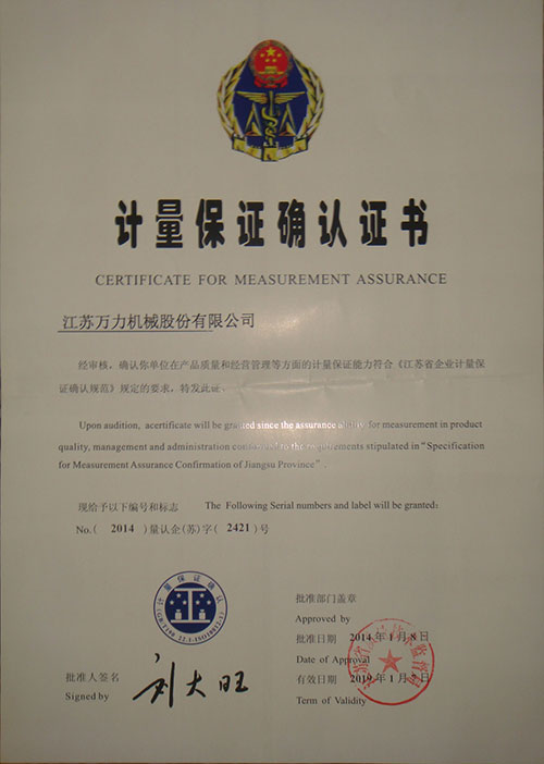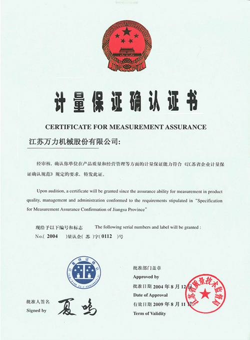 Measurement guarantee confirmation certificate |