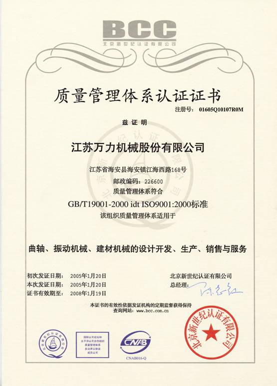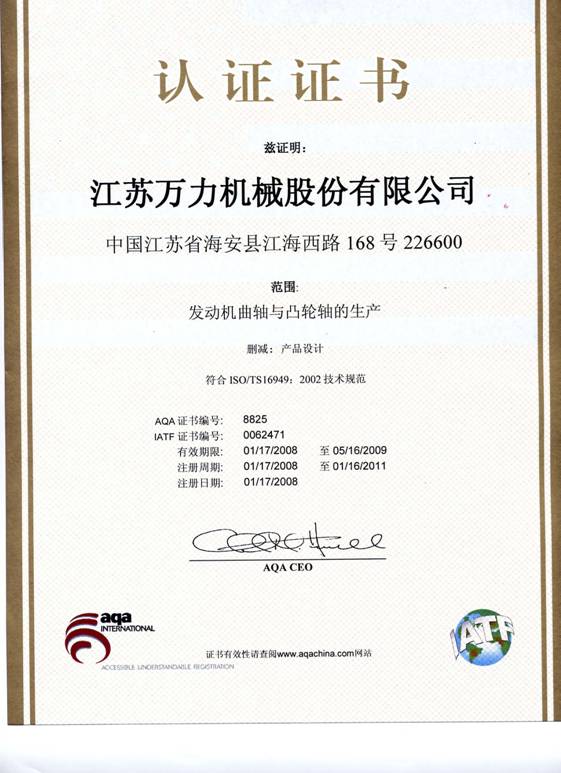 Quality system certificate (Chinese 08 version) |