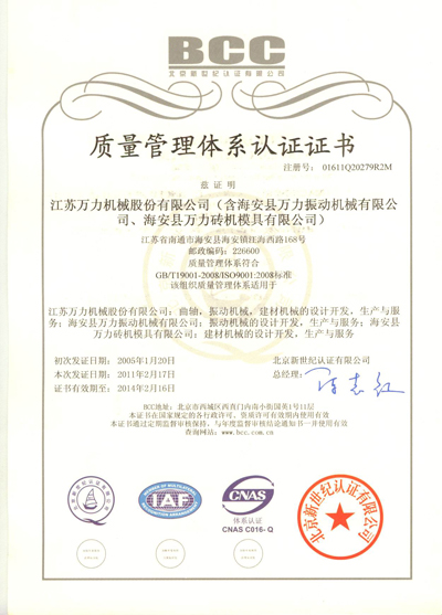 Quality system certificate (Chinese 09 version) |